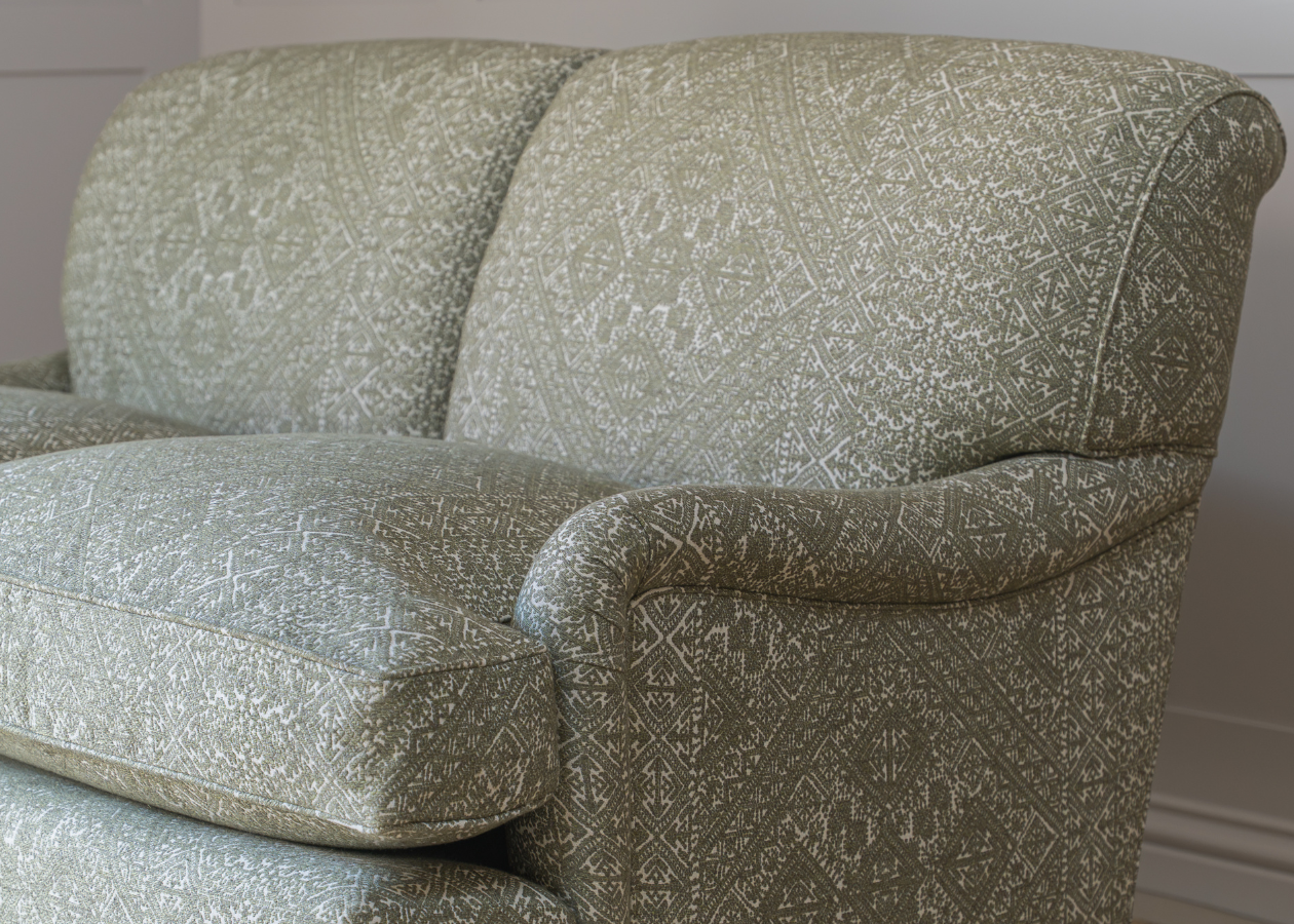 Our top specification with fillings & upholstery. Castor & leg colours to your choice. Settee Cost £3,999.00 – Plus 19.00 metres of material required shown here in Colefax & Fowler Silas @ £90.00 per metre