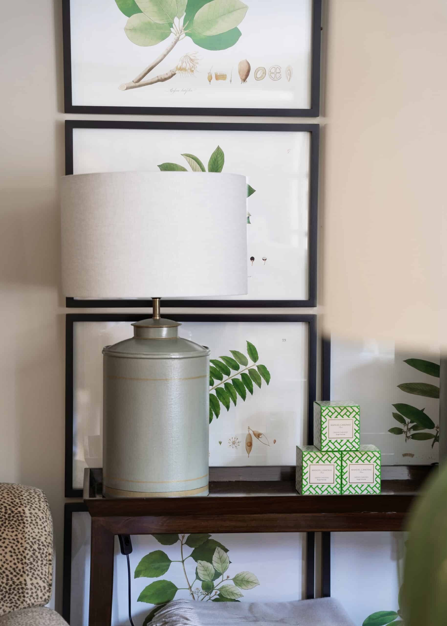 Blue CamelliaLamp Cost £275.00 Complete with Oka Linen 16″ Drum Shade £55.00 Total Cost £330.00 Handpainted Table Lamp
