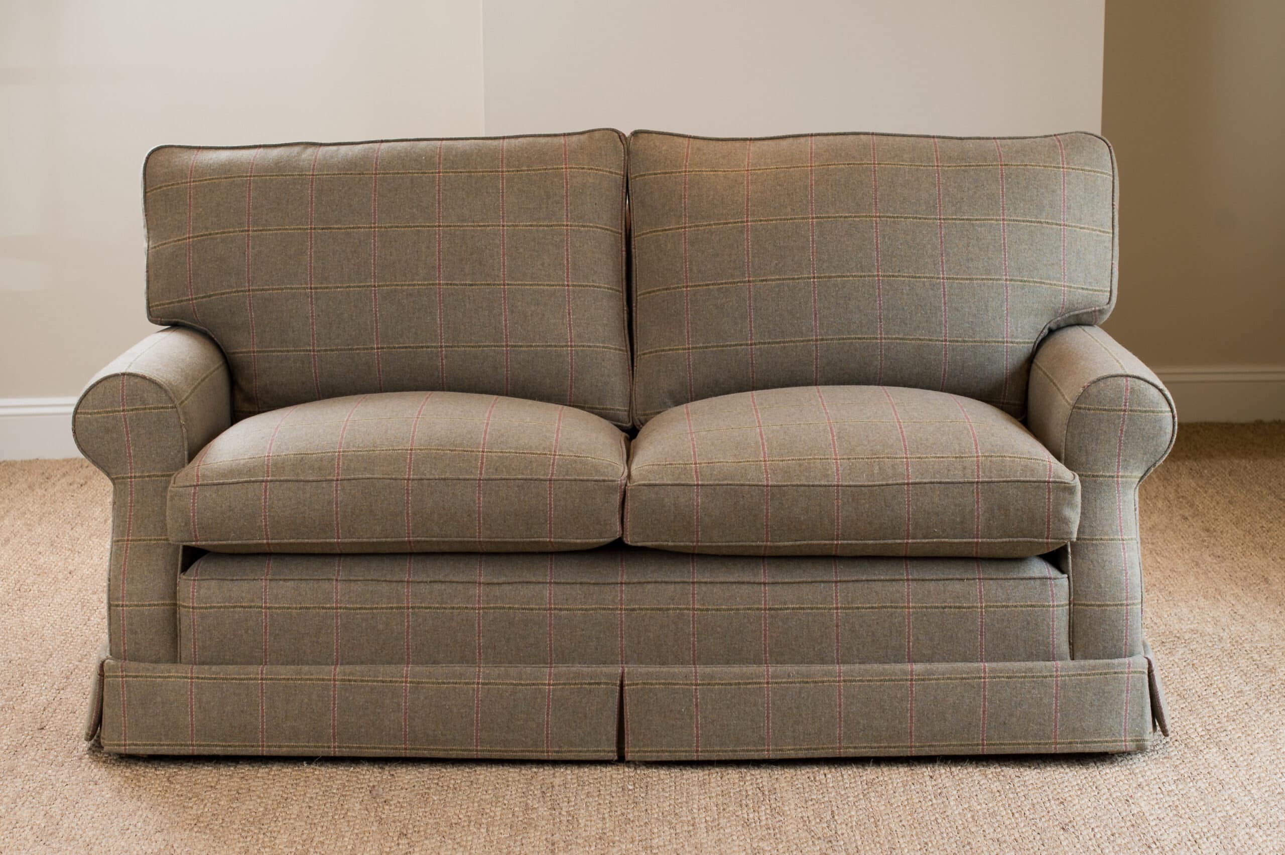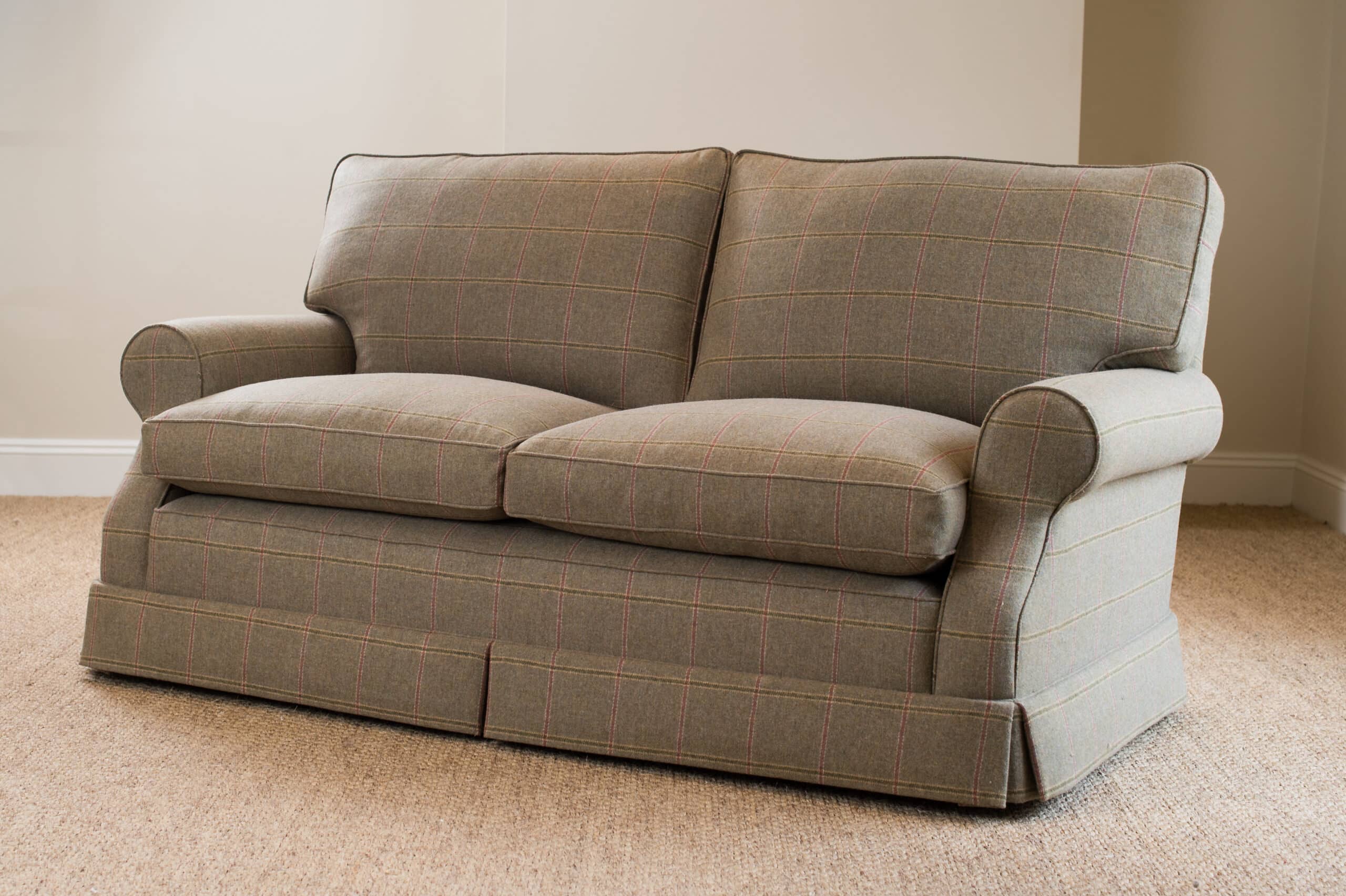 Shown here covered in Colefax & Fowler Lanark Plaid 100% wool